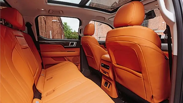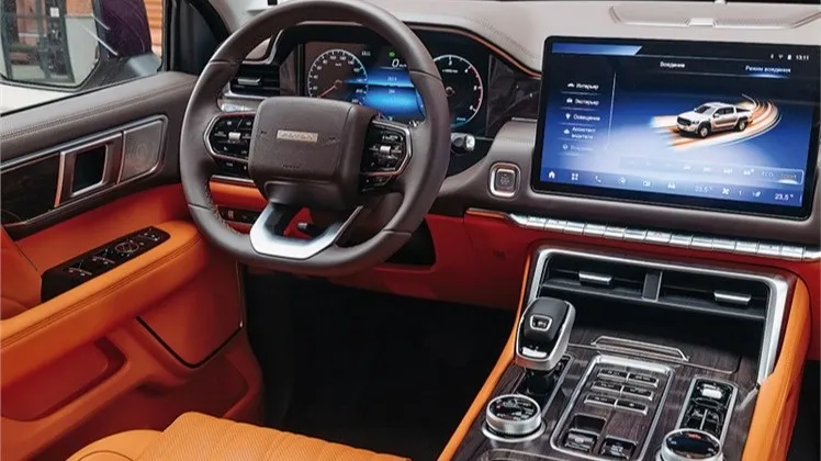 FOTON TUNLAND V9 получил большой набор опций безопасности и комфорта. Тут есть двухзонный климат-контроль с функцией очистки воздуха, панорамная крыша, несколько вариантов отделки салона (которые включают в себя черный, бежевый, светло-серый), а также 256 вариантов подсветки интерьера.